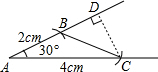 分析:先画射线AB,在以A为原点以AB为角的一边作∠A=30°,截取线段AB=2cm,AC=4cm,连接BC,则△ABC即为所求;