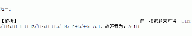 7x-1 【解析】【解析】 根据题意可得:(-2x2+4x-1)﹣(-2x2-3x)=-2x2+4x-1+2x2+3x=7x-1.故答案为:7x-1.