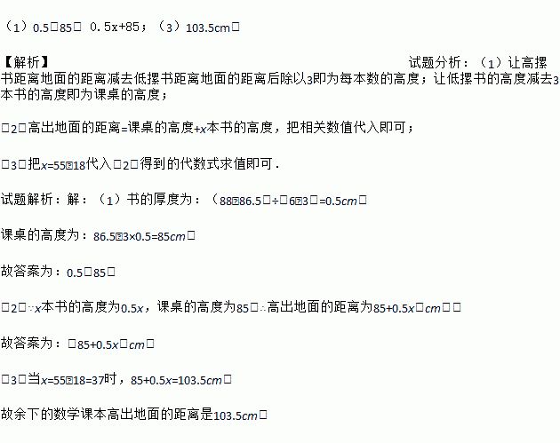 (3)桌面上有55本与题(1)中相同的数学课本,整齐叠放成一摞,若有18名同学各从中取走1本,求余下的数学课本高出地面的距离.