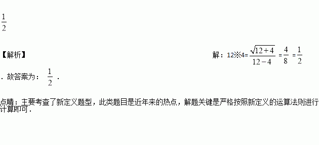 对于任意不相等的两个数a,b,定义一种运算※如下:a※b= ,如3※2=,那么12※4= ;