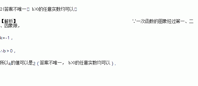 若一次函数(b为常数)的图象经过第一、二、四象限,则b的值可以是________(写出一个即可).