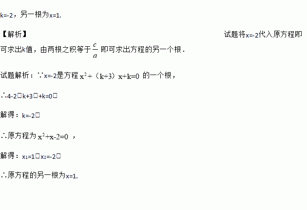 已知关于x的一元二次方程的一个根是x=-2,求k的值以及方程的另一根.