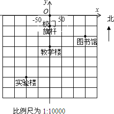 如图,建立适当的坐标系,旗杆、教学楼、图书馆、实验楼的位置如图所示,