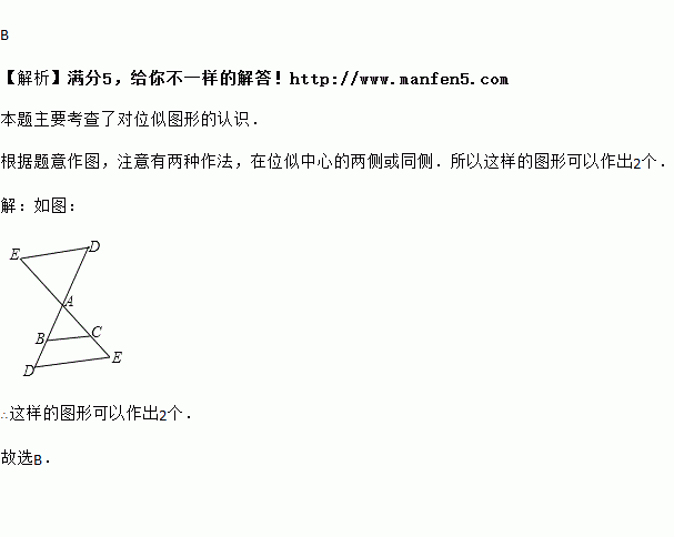 已知△ABC, 以点A为位似中心,作出△ADE, 使△ADE是△ABC放大2倍的图形,这样的图形可以作出( )个