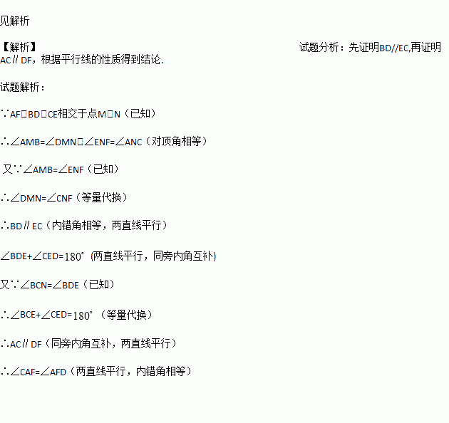 如图,已知∠AMB=∠EBF,∠BCN =∠BDE,求证:∠CAF =∠AFD.