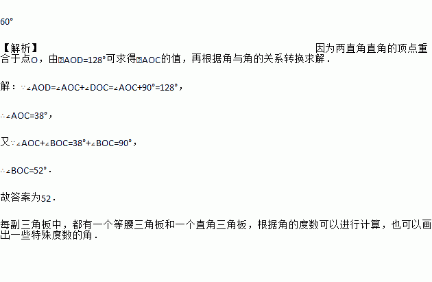 将两块直角三角板的直角顶点重合为如图所示的形状,若∠AOD=120°,则∠BOC=____.