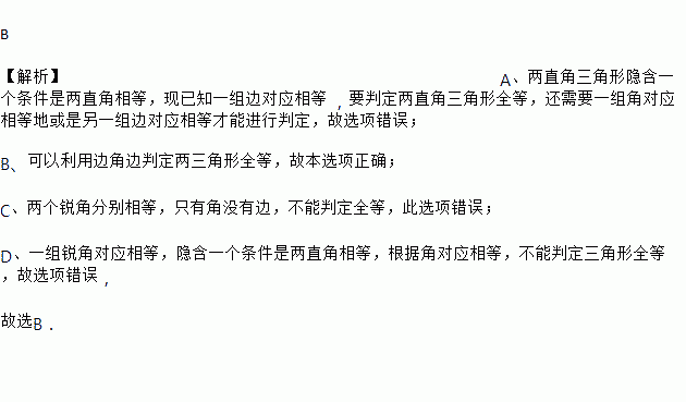 A. 一组边对应相等 B. 两组直角边对应相等