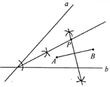 数学来源于生活又服务于生活,利用数学中的几何知识可以帮助我们解决许多实际问题,李明准备与朋友合伙经营一个超市,经调查发现他家附近有两个大的居民区A、B,同时又有相交的两条公路,李明想把超市建在到两居民区的距离、到两公路距离分别相等的位置上,绘制了如下的居民区和公路的位置图,聪明的你一定能用所学的数学知识帮助李明在图上确定超市的位置!请用尺规作图确定超市P的位置.(作图不写作法,但要求保留作图痕迹.)