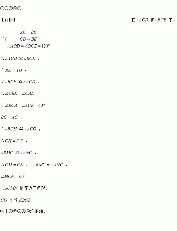 如图,点、、在同一直线上, 和是等边三角形, 交于, 交于,点、分别为、中点,①;②;③;④是等边三角形;⑤平分,其中正确的有__________.
