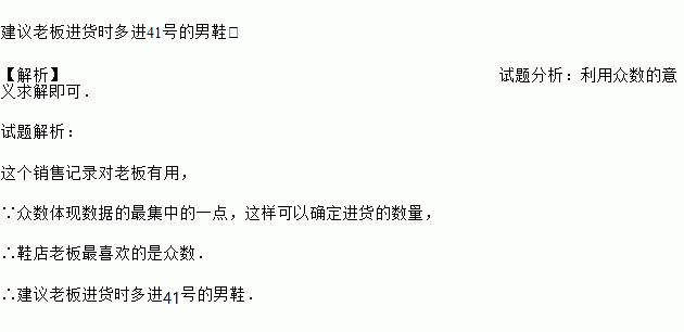 在洋浦一新开业的以经营男式皮鞋为主的鞋店当服务员的阿丽是个做事善于观察的小姑娘,上班一段时间后,她发现各种尺码的男式皮鞋销量并不均衡,于是她把这个发现记录下来交给了她的老板:
