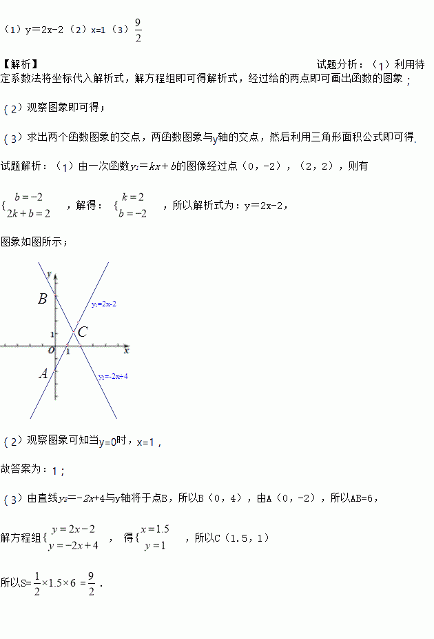 已知一次函数y1=kx+b的图像经过点(0,-2),(2,2).