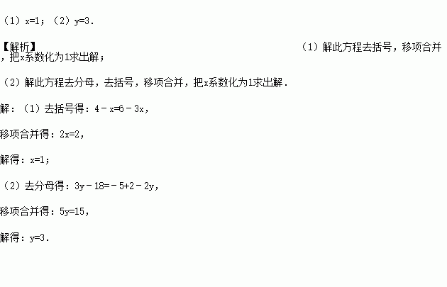 (1)4-x=3(2-x) (2)