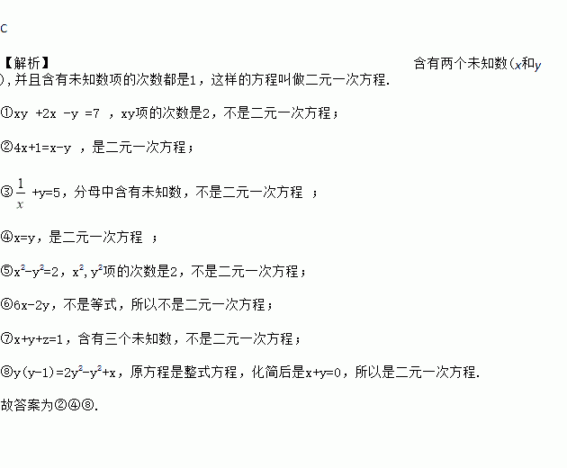 ①xy+2x-y=7; ②4x+1=x-y; ③