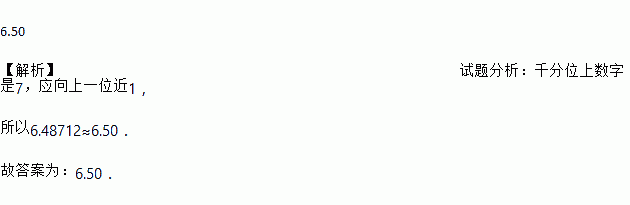 如果把6.48712保留到百分位可近似为_______.