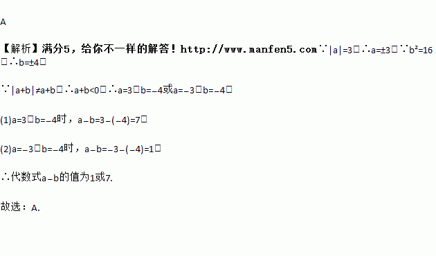 已知|a|=3,b2=16,且|a+b|≠a+b,则代数式a﹣b的值为( )