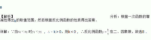 如果点A(x1,y1)和点B(x2,y2)是直线y=﹣kx+b上的两点,且当x1<x2时,y1<y2,那么函数y=的图象位于象限( )