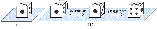 上(如图1),在图2中,将骰子向右翻滚90°,然后在桌面上按逆时针方向旋转90°,则完成一次变换.若骰子的初始位置为图6-1所示的状态,那么按上述规则连续完成22次变换后,骰子朝上一面的点数