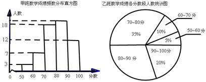 我市某中学七年级甲、乙、丙三个班中,每班的学生人数都为60名,某次数学考试的成绩统计如下:(每组分数含最小值,不含最大值)![]()