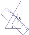 将一个直角三角板和一把直尺如图放置,如果∠α=43°,则∠β的度数是 ( )![]()
