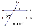 如右图所示,若a∥b,∠1=55°,则∠2= 度。