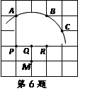 如图,正方形网格中,一条圆弧经过A,B,C三点,那么这条圆弧所在圆的圆心是![]()