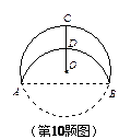 如图,将半径为8的⊙O沿AB折叠,弧AB恰好经过与AB垂直的半径OC的中点D,则折痕AB的长为![]()