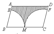 如图,□ABCD中,BC=4,BC边上高为3,M为BC中点,若分别以B、C为圆心,BM长为半径画弧,交AB、CD于E、F两点,则图中阴影部分面积是________.