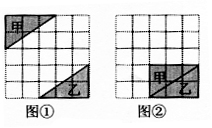 方格纸中,将图①中的三角形甲平移到图②中所示的位置,与三角形乙拼成一个矩形,那么,下面的平移方法中,正确的是![]()