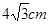 如图,已知Rt△ABC中,∠ABC=90°,∠BAC=30°, AC=4cm,将△ABC绕顶点C顺时针旋转至△A/B/C的位置,且A,C,B/三点在同一条直线上,则点A经过的路径的长度是 ( )