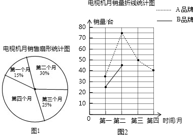 某商店在四个月的试销期内,只销售A,B两个品牌的电视机,共售出400台.试销结束后,将决定经销其中的一个品牌.为作出决定,经销人员正在绘制两幅统计图,如图1和图2.