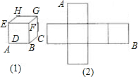 把图(1)的正方体表面展开成图(2)时,有一个面的4条棱都没有被剪开,这个面是正方形______(用字母表示).