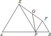 如图,已知AB=2,P是线段AB上的动点,分别以AP、PB为边在线段AB的同侧作等边△AEP和等边△PFB,连接EF,设EF的中点为G,连接PG,则PG的最小值是________.