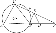 如图,B为线段AD上一点,△ABC和△BDE都是等边三角形,连接CE并延长交AD的延长线于点F,△ABC的外接圆⊙O交CF于点P.