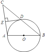 如图,以△ABC的边AB为直径作⊙O,BC与⊙O交于D,D是BC的中点,过D作DE⊥AC,交AC于点E.