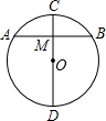 如图,⊙O的直径CD与弦AB交于点M,添加条件:________(写出一个即可),就可得到M是AB的中点.