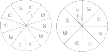 如图,是两个可以自由转动的圆盘,被分成若干个相等的扇形,分别转动圆盘,停止后,指针指向红色区域的概率是多大?