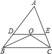 如图,在△ABC中,∠B与∠C的平分线交于点O,过O点作DE∥BC,分别交于AB、AC于D、E.若AB=7,AC=5.则△ADE的周长是________.