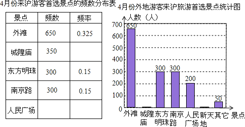 作为国际化的大都市,上海有许多优秀的旅游景点.某旅行社对4月份本社接待的2000名外地游客来沪旅游的首选景点作了一次调查,调查结果如下图表.