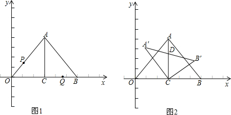 (2)如图2,固定△OAC,将△ACB绕点C逆时针旋转,旋转后得到的三角形为△A′CB′设A′B′与AC交于点D当∠BCB′=∠CAB时,求线段CD的长;
