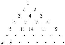 如图是与杨辉三角形有类似性质的三角形数垒,a,b是某行的前两个数,当a=7时,b=________.