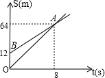 如图,OA、BA分别表示甲、乙两名学生匀速跑步运动的一次函数,图中S和t分别表示运动路程和时间,根据图象判断跑步快者比慢者每秒快________(m).