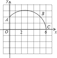 如图,在正方形网格图中建立一直角坐标系,一条圆弧经过网格点A(0,2),B(5,2)C(6,0),解答下列问题: