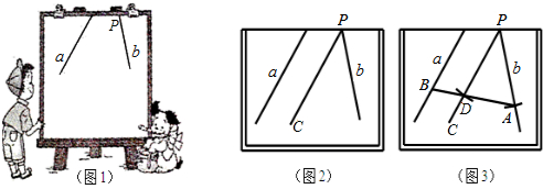 (3)请在图3画板内作出“直线a,b所成的跑到画板外面去的角”的平分线(画板内的部分),只要求作出图形,并保留作图痕迹.