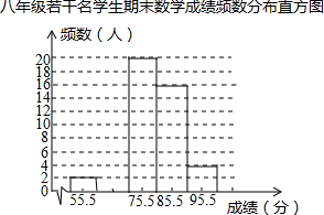 某校王老师随机抽取本校八年级一部分学生上学期期末考试的数学成绩作了统计分析,绘制成如下频数分布表和频数分布直方图,请你根据图表提供的信息,解答下列问题: