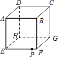 如图是一个边长6厘米的立方体ABCD---EFGH,一只甲虫在棱EF上且距F点1厘米的P处.它要爬到顶点D,需要爬行的最近距离是________厘米.