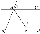 如图,AC∥BD,AE平分∠BAC交BD于点E.若∠1=68°,则∠2=