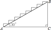 如图,某建筑物BC直立于水平地面,AC=9米,要建造阶梯AB,使每阶高不超过20 cm,则此阶梯最少要建________阶.(最后一阶的高度不足20 cm时,按一阶算,