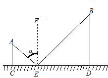 如图,CD是平面镜,光线从A点出发经CD上点E反射照到B点,若入射角为α,AC⊥CD,BD⊥CD,且AC=3,BD=6,CD=12,则tanα值为________.