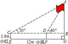 小亮:我从小红的位置向旗杆方向前进12m看旗杆顶端,测得仰角为60°