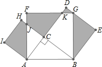 如图,直角三角形ABC,∠ACB=90°,分别以AC、BC、AB为边在AB的同侧作正方形,形成了三块阴影部分,记阴影AIHJ的面积为S